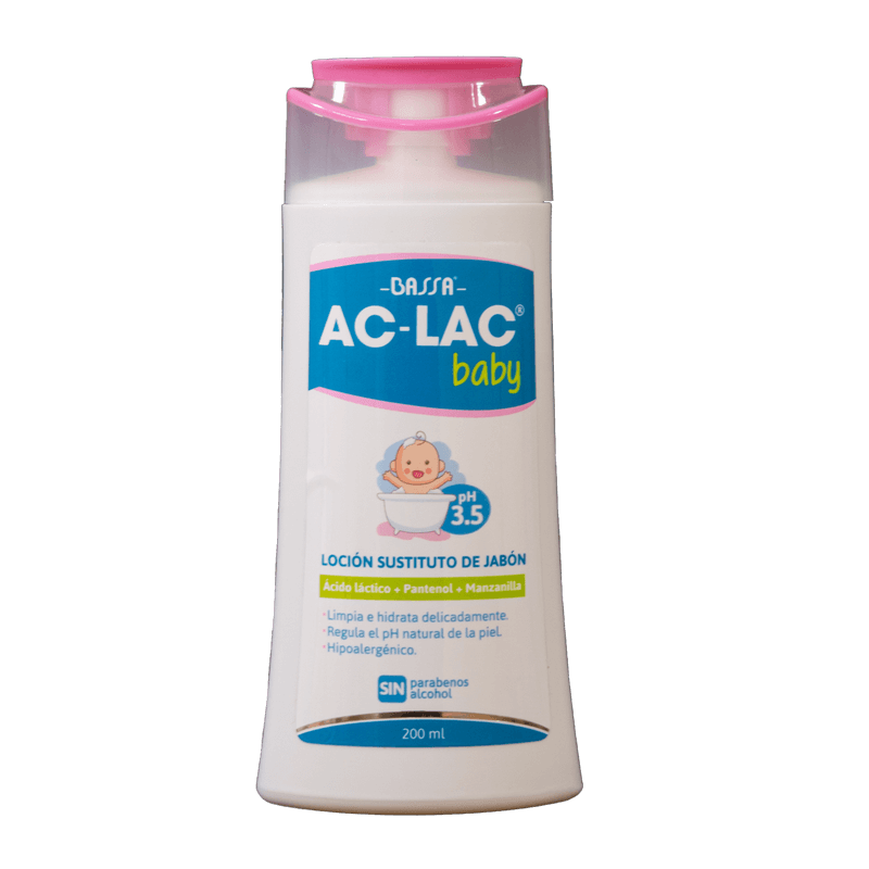 AC LAC Baby Loción 200 ml es una loción hidratante y suavizante formulada con ácido láctico, agentes humectantes y emolientes que hidratan y refuerzan la barrera cutánea de la piel delicada y sensible del bebé, previniendo la resequedad y la pérdida de agua.