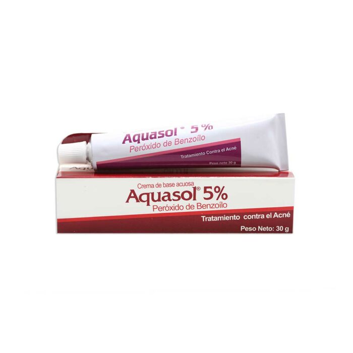 Aquasol 5 % Crema Tópica 30 g es un producto dermatológico diseñado para el tratamiento del acné vulgaris  gracias a su componente activo basado en peróxido de benzoilo al 5 %, un agente con potente efecto antibacteriano y queratolítico que ayuda a limpiar los poros, eliminar bacterias relacionadas con el acné y favorecer la renovación de la piel.