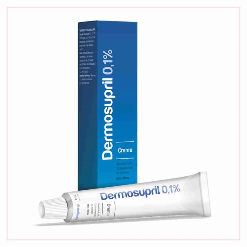 Dermosupril Crema 0.1% es un medicamento de uso tópico que contiene tacrolimus al 0.1%, un inmunomodulador indicado para el tratamiento de enfermedades inflamatorias de la piel, especialmente dermatitis atópica (eczema). Actúa modulando la respuesta del sistema inmunológico en la piel, ayudando a reducir la inflamación, el enrojecimiento y la picazón asociados a estas afecciones.
