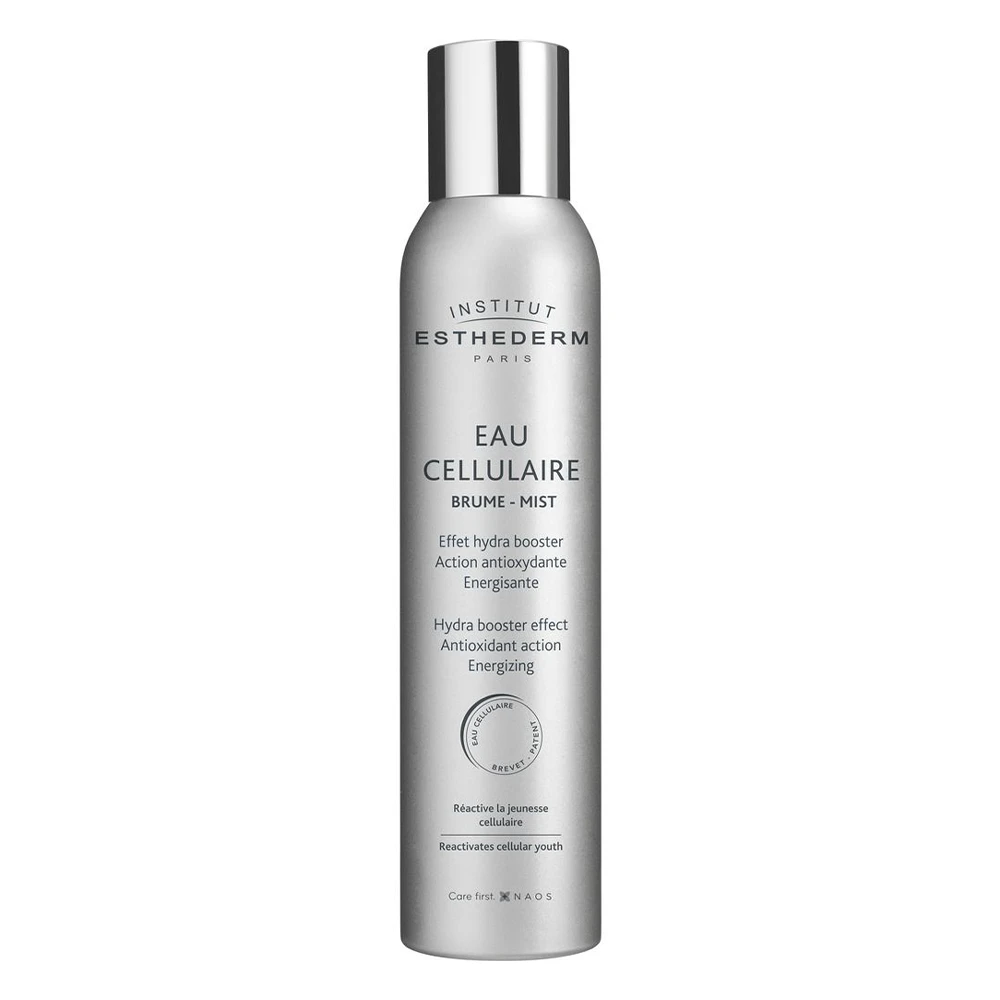 Institut Esthederm Eau Cellulaire AE Brume 200 ml es una bruma facial y corporal hidratante de alto rendimiento que actúa como un potenciador de hidratación y energía cutánea, reforzando la barrera cutánea para que la piel se vea más fresca, vital e hidratada.