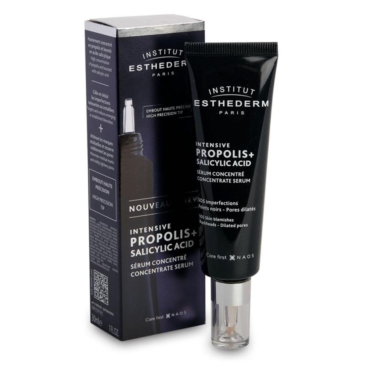 Es un suero facial antiedad y antiimperfecciones de la línea Intensive desarrollado para pieles con tendencia a imperfecciones, puntos negros y poros dilatados. Su fórmula combina propóleo altamente concentrado, conocido por sus propiedades purificantes, calmantes y antioxidantes, con ácido salicílico, un ingrediente exfoliante que favorece la renovación celular ayuda a limpiar los poros y afina la textura de la piel. Asimismo, incorpora agua celular patentada que optimiza la eficiencia de los activos y mejora la comunicación entre células cutáneas. Este suero gel ligero y de alta penetración actúa tanto sobre imperfecciones actuales como sobre marcas residuales, ofreciendo una piel con aspecto más uniforme, liso y renovado.