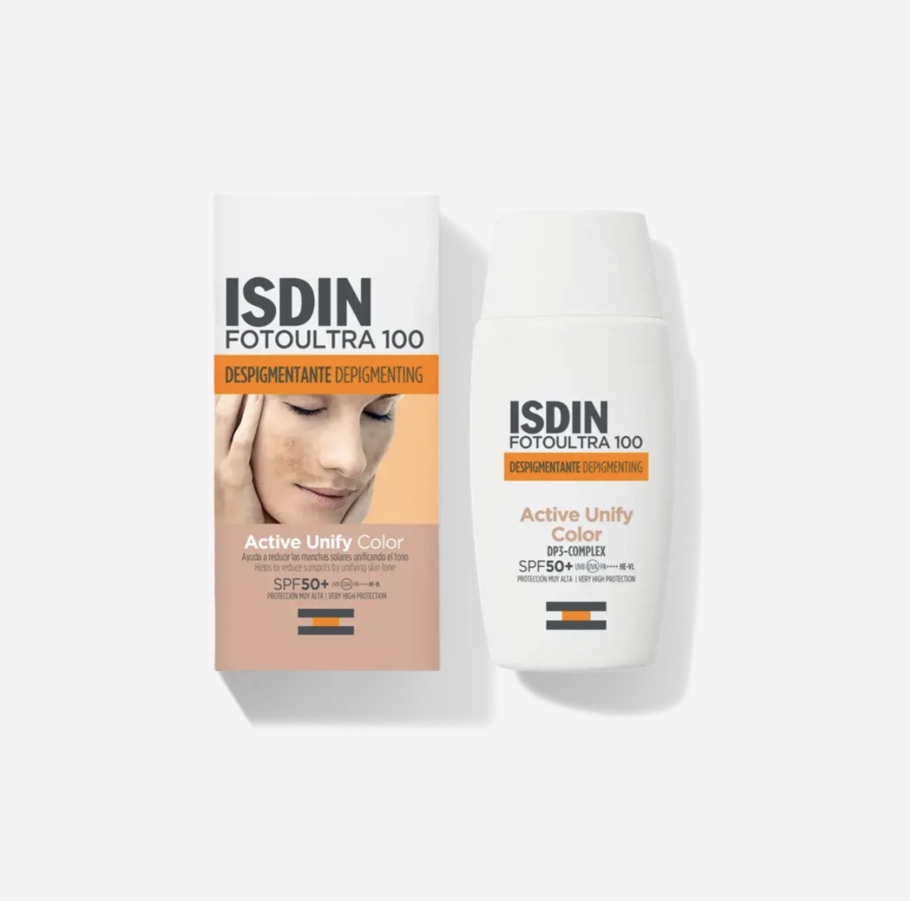 ISDIN FotoUltra 100 Active Unify Color SPF 50+ es un fotoprotector facial dermatológico diseñado especialmente para la prevención y tratamiento de las manchas solares, como el melasma y las hiperpigmentaciones causadas por la radiación UV. Combina una protección solar muy alta con un toque de color que ayuda a unificar el tono de la piel, proporcionando un acabado natural y luminoso.