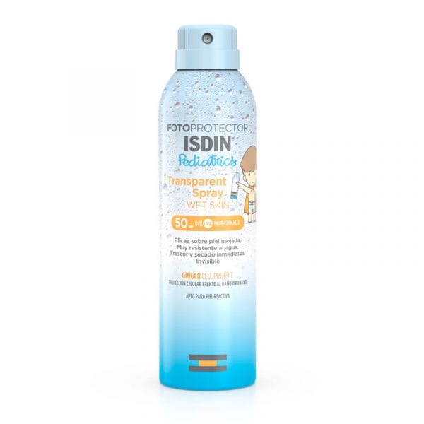 ISDIN Pediatrics Fotoprotector Transparente Spray 250 ml es un protector solar corporal especialmente formulado para la piel delicada de bebés y niños, aunque también puede ser utilizado por adultos con piel sensible. Ofrece alta protección de amplio espectro frente a los rayos UVA y UVB, ayudando a prevenir quemaduras solares, daño cutáneo y envejecimiento prematuro desde edades tempranas.