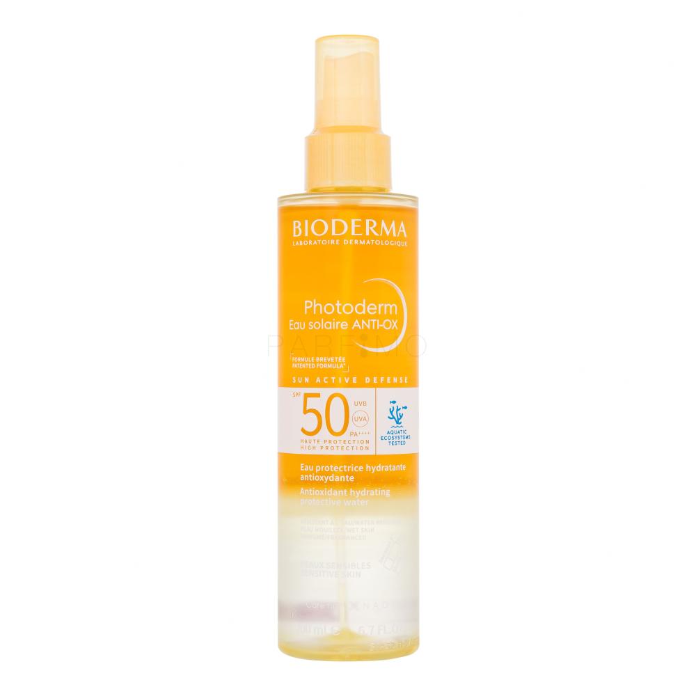 Photoderm Eau Solaire Anti-Ox SPF 50+ es un protector solar en formato agua bifásica formulado con una fase acuosa y oleosa para lograr una textura ultra ligera, fresca y de rápida absorción, que deja una sensación de piel desnuda sin efecto graso ni pegajoso. Incorpora la tecnología Sun Active Defense, que refuerza las defensas naturales de la piel frente a la radiación solar, y el activo Anti-Ox Active, que ayuda a prevenir el daño.