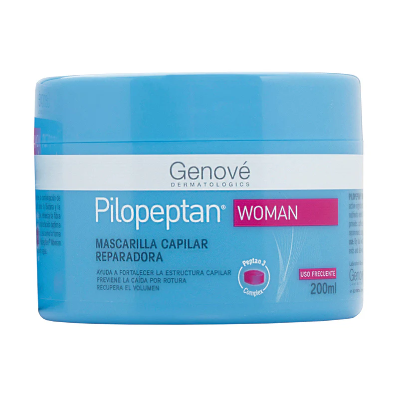 Pilopeptan Woman Mascarilla Capilar 200 ml es un tratamiento capilar reparador e hidratante formulado para fortalecer el cabello debilitado, mejorar su resistencia y prevenir la rotura. Está especialmente diseñada para mujeres con cabello dañado, frágil o con tendencia a la caída, ayudando a recuperar la salud y el aspecto natural del cabello. Su fórmula combina vitaminas del grupo B, biotina, zinc, proteínas vegetales hidrolizadas y ácido hialurónico, ingredientes que trabajan para nutrir profundamente la fibra capilar, reforzar su estructura y aportar hidratación intensa. Estos activos ayudan a mejorar la elasticidad del cabello y favorecen un aspecto más fuerte, brillante y manejable.