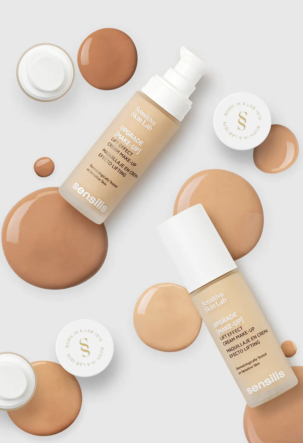 SENSILIS Upgrade Makeup es una base de maquillaje dermatológica de textura cremosa con cobertura media a alta y efecto lifting luminoso. Su fórmula con polisacáridos de avena, extracto de arroz rojo, extracto de soja y vitamina E mejora la firmeza y la luminosidad de la piel, y ayuda a corregir arrugas y signos de fatiga.