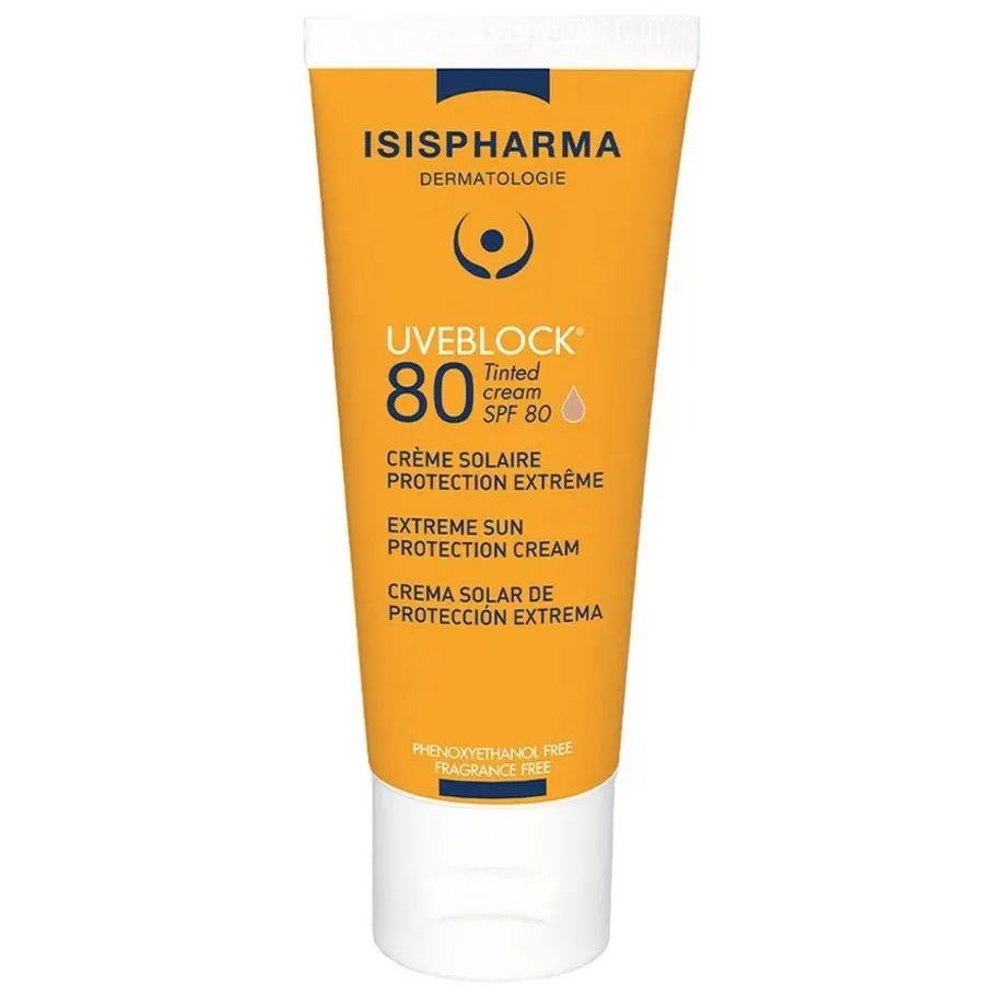 Uveblock Crema Tinte SPF 80 de ISISPHARMA es un fotoprotector facial de muy alta protección con color, diseñado para defender la piel contra los rayos UVA, UVB e infrarrojos, mientras unifica el tono y deja un acabado natural.
